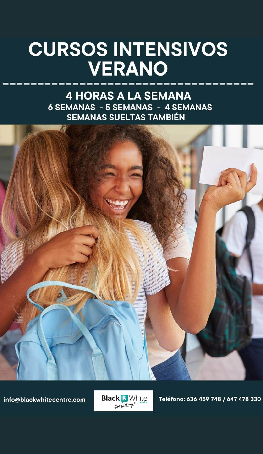 En Black & White Centre somos especialistas en la enseñanza de idiomas con una metodología natural y eficaz. Enseñamos desde la práctica: los alumnos aprenden a hablar antes de conocer las reglas gramaticales. La gramática y la sintaxis se explican solo cuando ya dominan estructuras mediante la práctica real.
